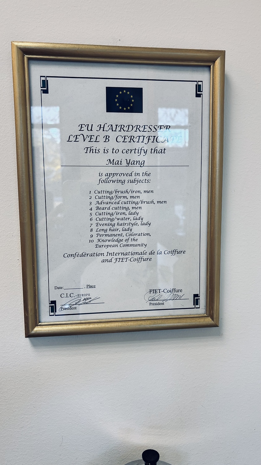 GESÄLLBREV • FRISÖRLICENS